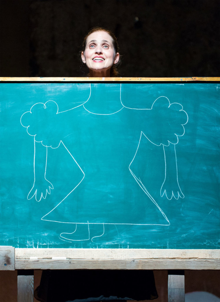 The inter-disciplinarian artist Merav Ben-David wanders through the memory-basements of far-flung towns and retrieves forgotten Hebrew folk songs. The songs come back to life in an imaginary classroom wherein shtetl-type Hebrew meets scientific jargon, states of terror encounter pastoral hallucinations, and sweet childhood songs mix with poetic desperation and black humor. With these songs, the teacher undergoes various mental states as the characters interchange incessantly from a first-grade schoolteacher to a European nanny, a Hebrew pioneer, a communist laborer, a Yiddish club singer, and an innocent Israeli girl.