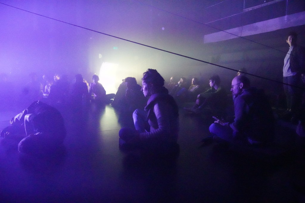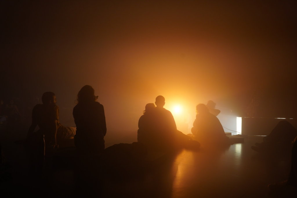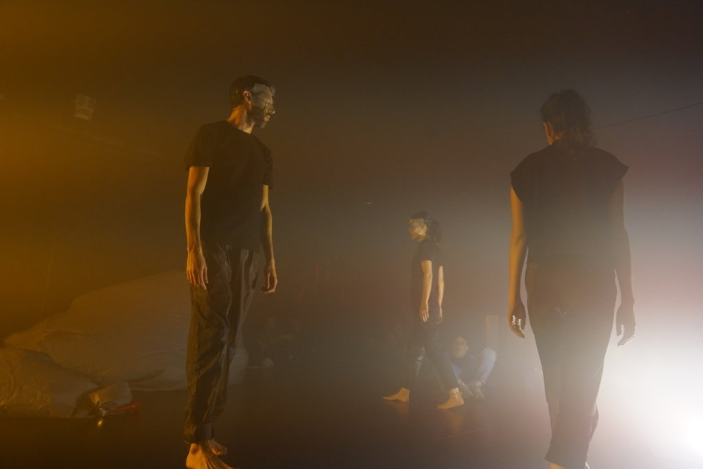 This is a vague gaze upon an obscure happening which holds an invitation: to establish a new ground in “areas of minimum” – of body, rustle, expression, relations and transfiguration. (Outside of language, in the intimacy of theater, the meaning of passivity, absence, action and non-action, are being expanded, embodied, and re-experienced.)