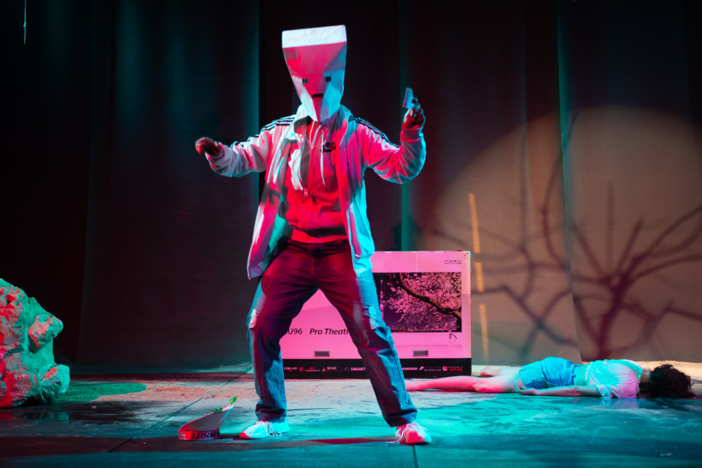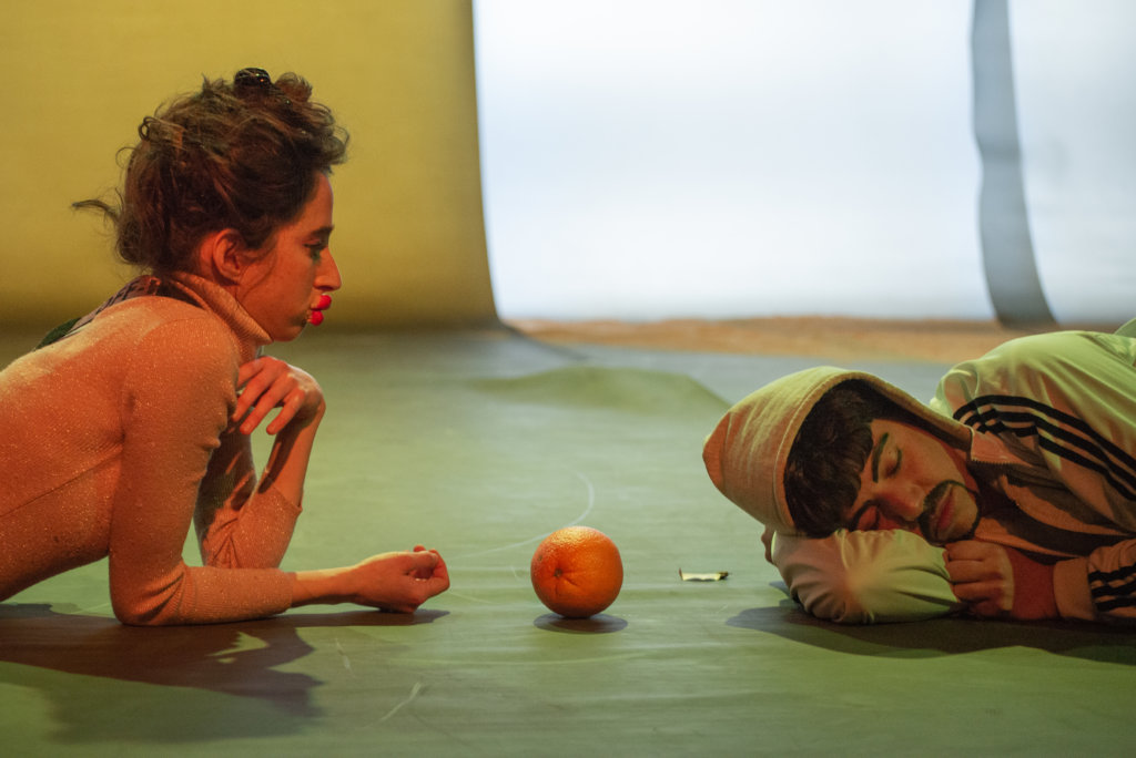 Without any justification that could be reconciled with sound logic, they were the only ones left after a war. A girl, a woman, a broken magician, and one man. In the new world, nonsense and heartbreak constitute the narrative that provides the context for the characters’ journey toward self fulfillment. Generic recollections from their former life, pretend pregnancy photographs, a smile stuck in a crossroad, the mermaid, a ride in a helicopter that did not bother to land, and skydiving a bit too close to the ground: these will serve as the first and last test case of its kind for the study of behavioral sciences in the new era. Pecan Park is a visual theater production, wherein the dark and the ridiculous, the dreamlike, and the nightmarish live undisturbed, side by side. Shani Shabtai, Adi Kahana and Bat El Dotan created this work and perform it with much virtuosity. Together, Ofer Laufer’s fascinating stage-lighting design and Amir Meir’s poetic-pathological sound design create a cruel and companionate psychedelic world.