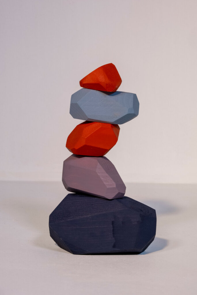 A box with 5 colored different sized balancing stones.
