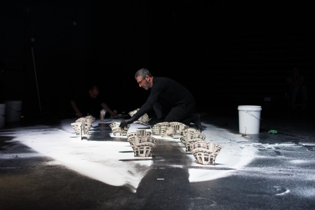 בטכניקת ה־PuppetCinema החדשנית שפיתח הבמאי צבי סהר בניו יורק, מפוסלת העלילה במלח ונייר ומוקרנת על מסך גדול. הבמה משמשת בעת ובעונה אחת כאחורי קלעים וכסט צילום לסרט המצולם ומוקרן במעגל סגור, חי לעיני הצופים. כך, במעגל של הרס ובנייה, כשכל סצנה נבנית על חורבות קודמותיה, נוצר עיבוד חדשני ומתוחכם לעלילה הבדיונית, המשקפת את שבר חלומה של החברה הישראלית המפולגת.