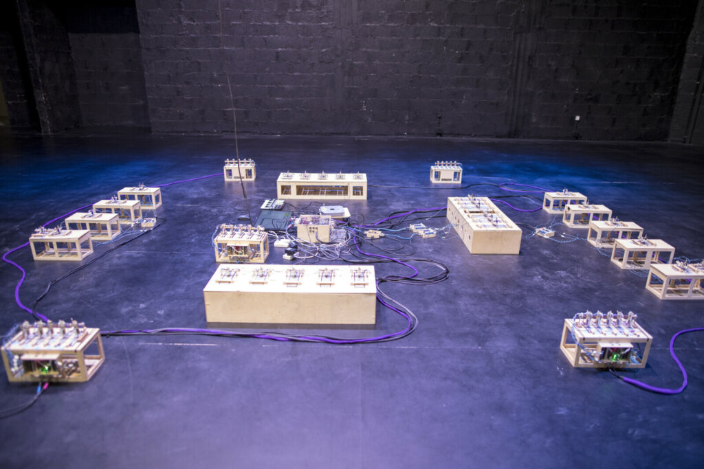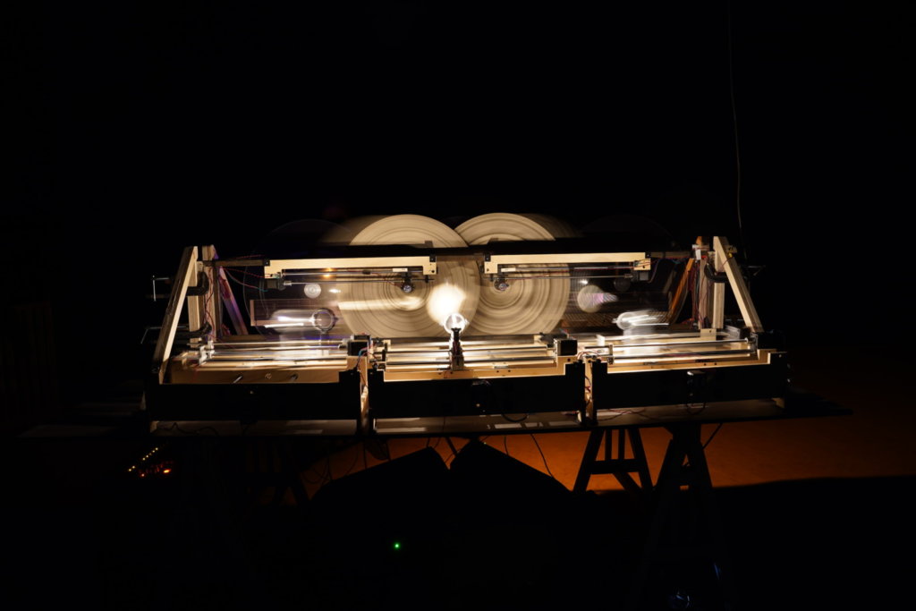 מאז שהתחילה את מסעה הרוחני בסערה של אלקטרונים ופוטורזיסטורים, הישות החשמלית שהפיח אמיר מאיר בווילה רדיוז (מיצב אור-קולי? כלי נגינה שמנגן את עצמו לדעת? מכונת שכינה?) לא מפסיקה לבנות את עצמה. בין הלחמה להדפסה, בין חיווט מנועים להנדסת סולמות בכיוונון טבעי, ביקשנו מאמיר לעצור רגע את המערבולת, להניח את הווילה על הבמה ולתת לקהל להקשיב למחזור הקסום שלה קורה פעם אחת מהתחלה על הסוף: במקום 7 דקות בגן עדן קיבלנו 8 דקות בכור המצרף.