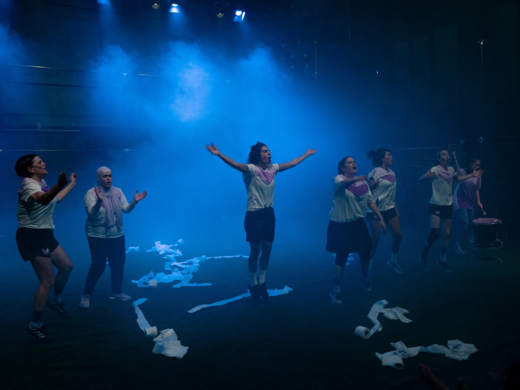 זו לא מטאפורה, לשם המופע נבנה מגרש כדורגל בתוך אולם התיאטרון של הזירה, כולל צוות צילום חי, שופטות ואפילו המנוני כדורגל חדשים שהולחנו ספיישל בשביל להעמיק את המסורת סביב נבחרת הנשים התיאטרלית. גם בגזרת הקהל – מותר לצעוק, מותר לעודד, מותר לפצח גרעינים!