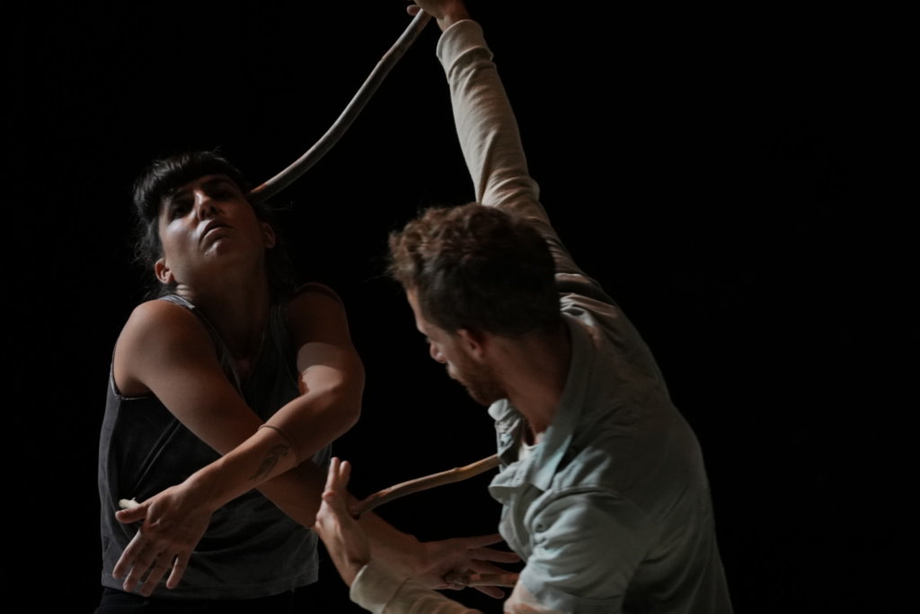 סביבת מחיה שבה מותר להביט: על חיות-אדם, תנועות וקו מפותל. על התקרבות והתרחקות, התפתחות אנושית ונסיגה. על מה שלא שרד עם הזמן, על מה שכאן, על הבמה, על אשליה.
