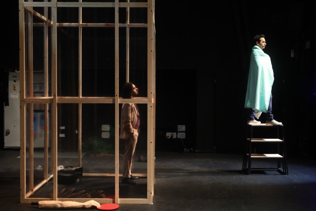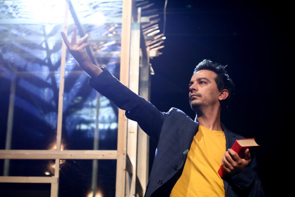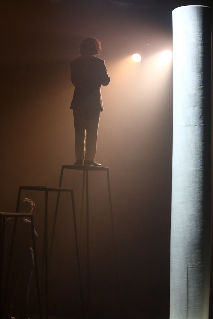 היוצרת נאווה פרנקל היא אמנית צירופי הרמזים. היא אוהבת להשליך את הקהל לתוך כאוס, ולחלץ אותו משם בהומור ותחכום. היא לא רוצה שתבינו הכל מיד. כדי להבין צריך שפה, וכדי ללמוד שפה חדשה צריך לחשוב מחדש. "תנו לי נקודת משען ואזיז את כדור הארץ" היא יצירה פיוטית ושנונה, פרפורמנס הומוריסטי לשני שחקנים ופטיש. האסתטיקה הייחודית של פרנקל, והמוצגים עצומי המימדים על הבמה יוצרים עולם חדש ומפתיע, זכוכית מגדלת על הקיום האנושי. ביצירתה החדשה נאוה משאילה מארכימדס את שמה, המערבב תקפות מדעית, פיסיקלית, עם תקווה לא כמוסה לבלתי אפשרי. היא נודדת עם כישלונה ההכרחי של המנהיגות כמוסד, מצביעה על פרדוכס היחסים בין ציבור לנקודת מישענו, ובאמצעות אקטים של הבטחה ואכזבה, חירות ודין, עלומים ועייפות, היא משקיעה עבודה אקטיבית, יומיומית, במעשה ההתפכחות.