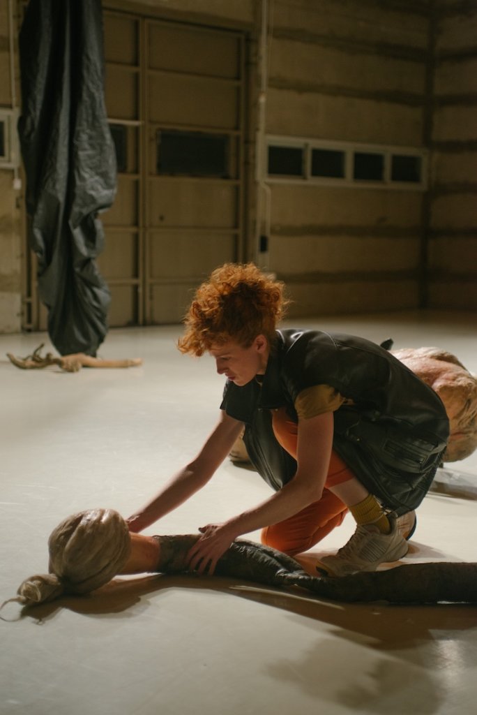היא סוחבת את הזחל הרוטט על גבה. הגלימה הזהובה שלה נשרכת אחריה. היא משליכה אותו ומתחילה להתקפל בעצמה. על הבמה נושם כעת כדור אנושי, פקעת שכולה זהב